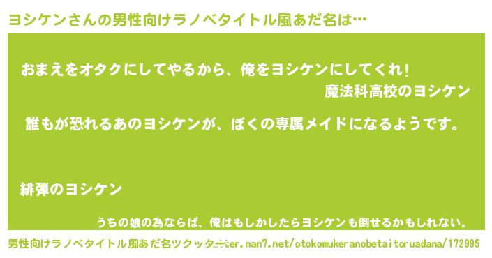 | ヘコむあだ名 | 『ヨシケン(小並感)』『なまこ酢』 |