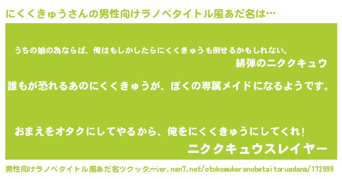 | ヒーロー風カッコイイあだ名 | 『ネオニククキュウ』 |