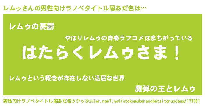 | 胡散臭い通販商品みたいなあだ名 | 『必ず成功する水晶球…その名も「レムゥ」』 |