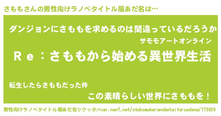 | 意味不明あだ名 | 『自称さもも』『とにかく怪しいさもも』 |