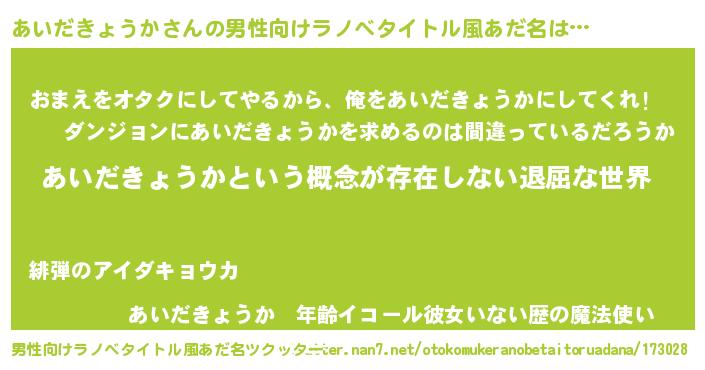 | 女子向けラノベタイトル風あだ名 | 『異世界で失敗しない100のあいだきょうか』 |