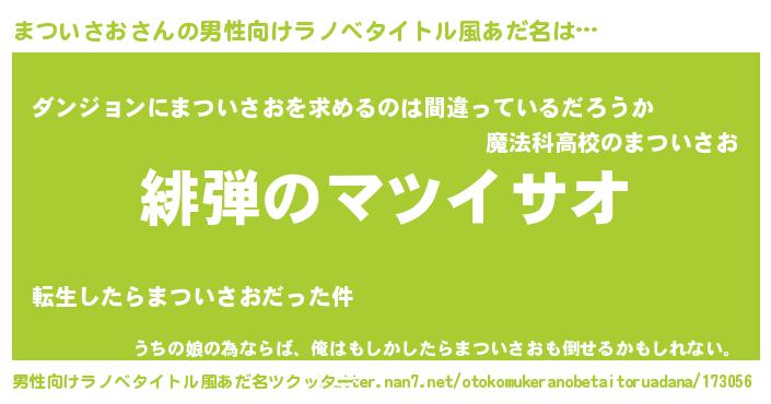 | 女子向けラノベタイトル風あだ名 | 『シンデレラまついさお家の靴箱館』 |