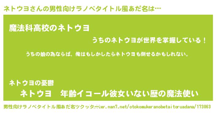| ヘコむあだ名 | 『酢こんぶ』『ネトふぇ~』『ネトを』 |