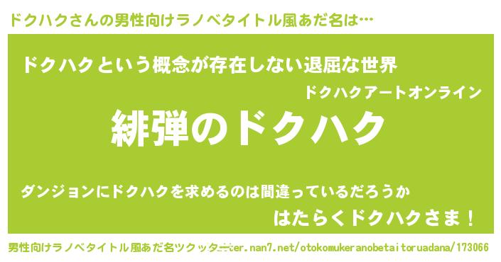 | ヒーロー風カッコイイあだ名 | 『ネオドクハク』『スーパードクハク』 |