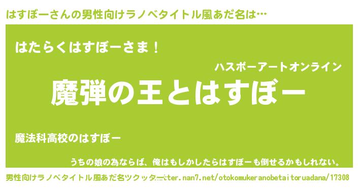 | 意味不明あだ名 | 『住所不定無職はすぼー(98歳)』 |