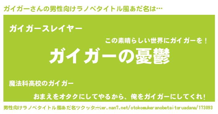 | 女子向けラノベタイトル風あだ名 | 『(仮)ガイガーのやんごとなき事情』 |