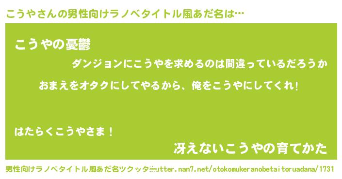 | 女子向けラノベタイトル風あだ名 | 『こうや夫妻のなれそめ』 |