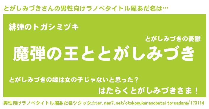 | 意味不明あだ名 | 『住所不定無職とがしみづき(7歳)』 |