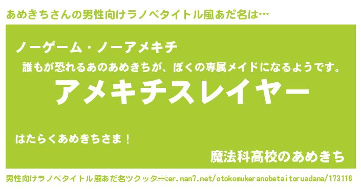 | 意味不明あだ名 | 『めかぶ科あめきち属』『自称あめきち』 |
