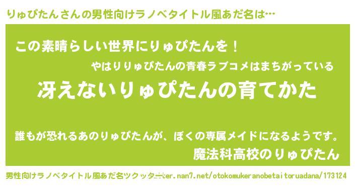 | 意味不明あだ名 | 『住所不定無職りゅぴたん(12歳)』 |