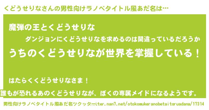 | 胡散臭い通販商品みたいなあだ名 | 『あなたにだけ特別に提供する世界で10本だけ現存している希少なブランデー…その名も「くどうせりな」』 |