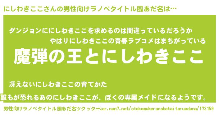 | 意味不明あだ名 | 『住所不定無職にしわきここ(79歳)』 |
