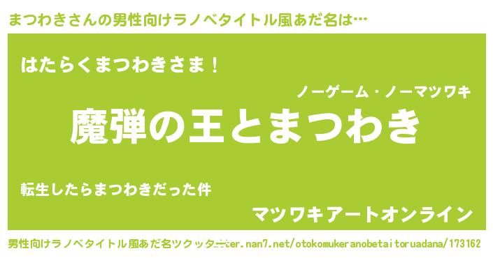 | 女子向けラノベタイトル風あだ名 | 『まつわきが死なない童話 林檎のまつわきの診療簿』 |