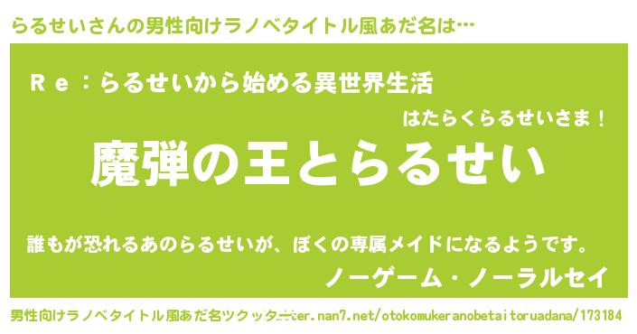 | ヘコむあだ名 | 『らるせい(小並感)』『酢こんぶ』 |