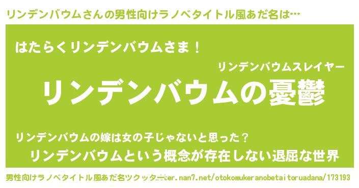 | 胡散臭い通販商品みたいなあだ名 | 『モテモテ間違いなしブレスレット…その名も「リンデンバウム」』 |