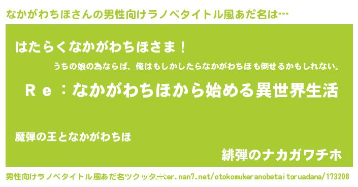 | 女子向けラノベタイトル風あだ名 | 『闇のなかがわちほ』 |