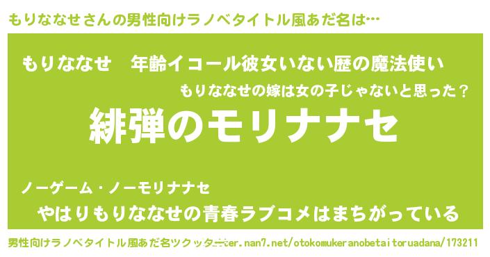 | 女子向けラノベタイトル風あだ名 | 『シンデレラもりななせ家の靴箱館』 |