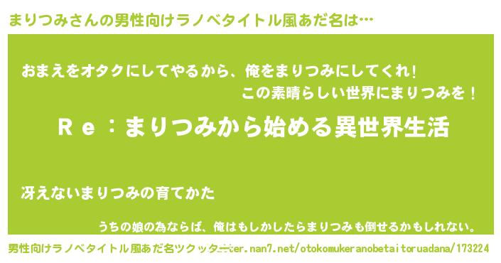 | 女子向けラノベタイトル風あだ名 | 『まりつみストレイドッグス』 |