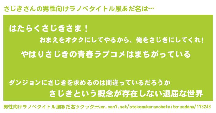 | 女子向けラノベタイトル風あだ名 | 『さじきの雑貨屋さん』『さじき恋絵巻』 |