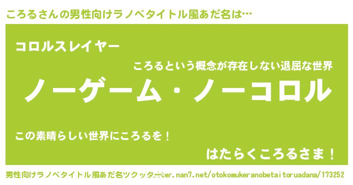 | 伝説のあだ名 | 『救世主となる技術者ころる』 |