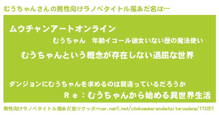 | 意味不明あだ名 | 『永久保存むうちゃん』『自称むうちゃん』 |