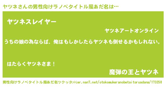 | ファンタジー風あだ名 | 『エターナルヤツネー』『ヴァルヤツーナ』 |