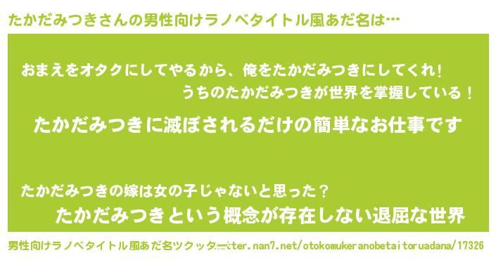 | 女子向けラノベタイトル風あだ名 | 『横柄たかだみつきと宰相陛下』 |