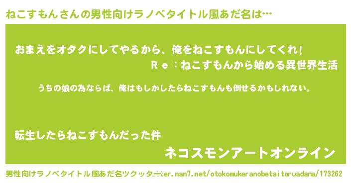 | 胡散臭い通販商品みたいなあだ名 | 『世界が平和になる高級そうな絵画…その名も「ねこすもん」』 |
