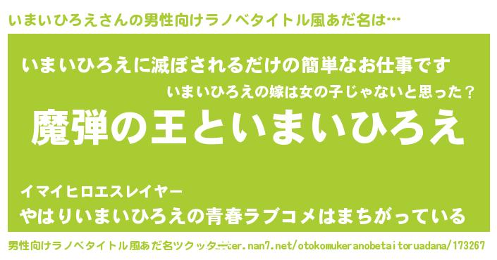 | 女子向けラノベタイトル風あだ名 | 『乙女ゲームの破滅フラグしかない悪役いまいひろえに転生してしまった…』 |