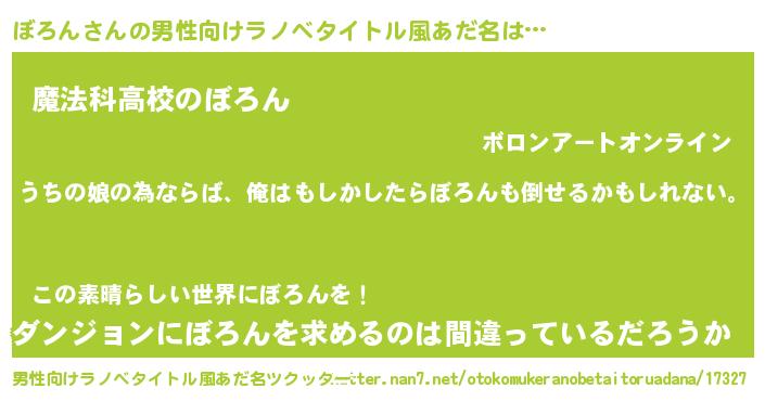 | 意味不明あだ名 | 『ぼろんフォーエバー』『自称ぼろん』 |