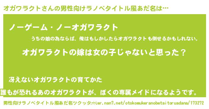 | 女子向けラノベタイトル風あだ名 | 『オガワラクトの卵を拾いまして』 |
