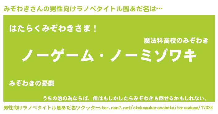 | 女子向けラノベタイトル風あだ名 | 『死神みぞわきの再婚』 |