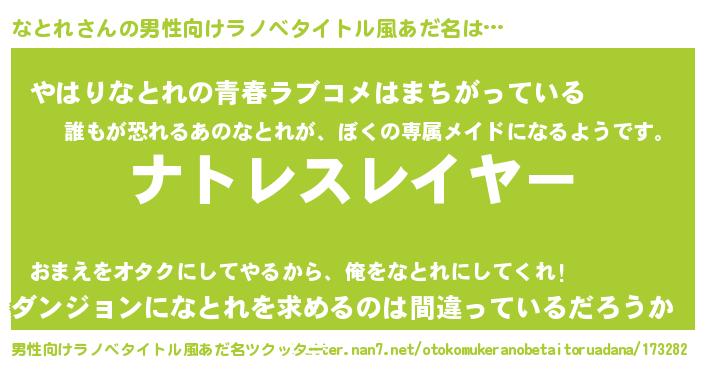 | 意味不明あだ名 | 『めかぶ科なとれ属』『永久保存なとれ』 |