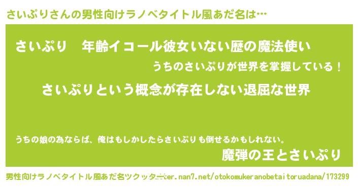 | 胡散臭い通販商品みたいなあだ名 | 『絶対に幸福をもたらす健康食品…その名も「さいぷり」』 |