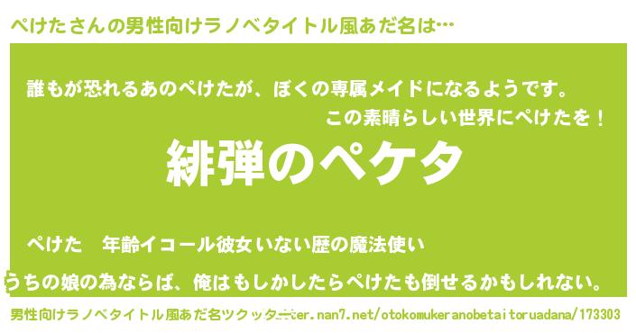 | 意味不明あだ名 | 『永久保存ぺけた』『ぺけたフォーエバー』 |