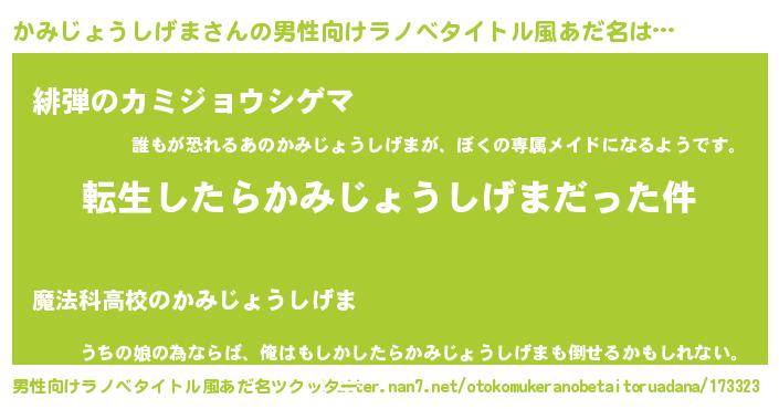 かみじょうしげまさんの男性向けラノベタイトル風あだ名をツクッター!