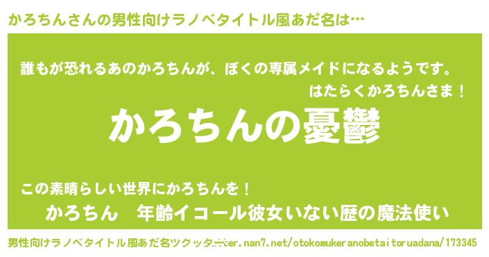| 女子向けラノベタイトル風あだ名 | 『(仮)かろちんのやんごとなき事情』 |