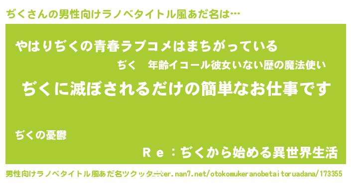 ぢくさんの男性向けラノベタイトル風あだ名をツクッター!