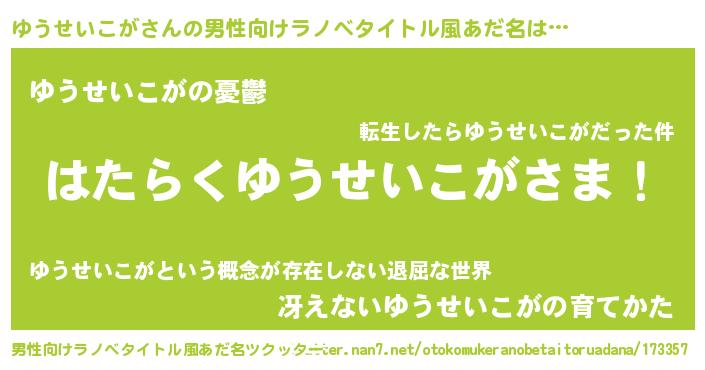 | 胡散臭い通販商品みたいなあだ名 | 『必ず成功するブレスレット…その名も「ゆうせいこが」』 |