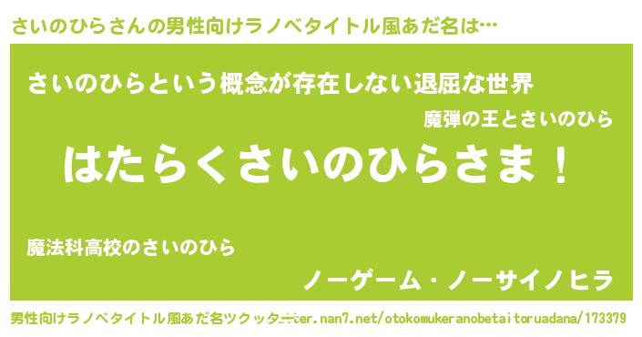 | 意味不明あだ名 | 『永久保存さいのひら』『自称さいのひら』 |