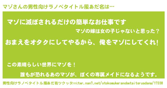 | ヘコむあだ名 | 『マゾ(遠い目)』『マゾを』 |