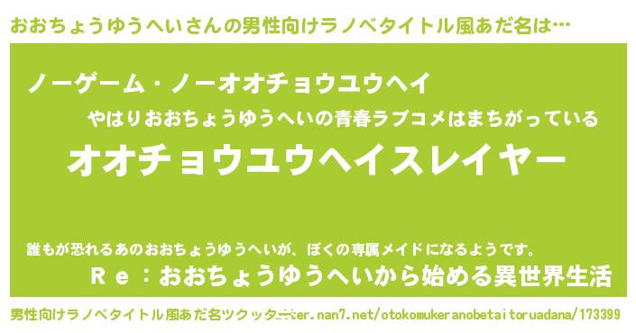 | ヒーロー風カッコイイあだ名 | 『正義の使者おおちょうゆうへい』 |