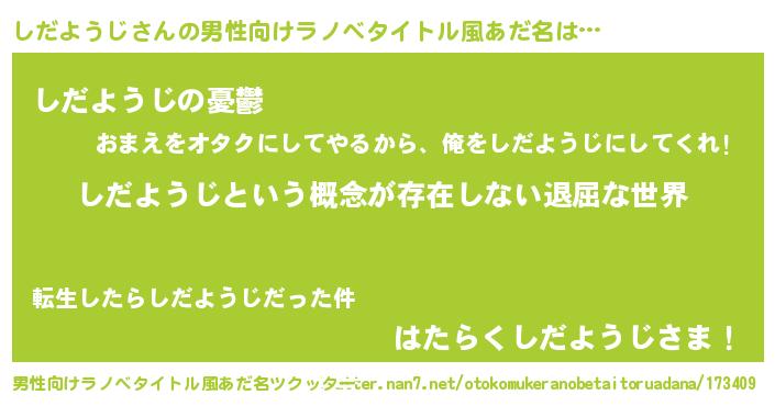 | 女子向けラノベタイトル風あだ名 | 『異世界で失敗しない100のしだようじ』 |