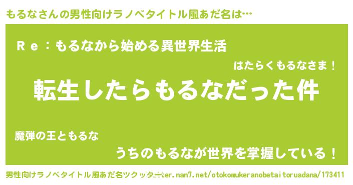 | 意味不明あだ名 | 『なめこ科もるな属』『自称もるな』 |
