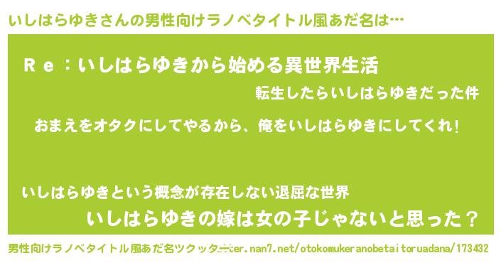 | ヘコむあだ名 | 『いしっ子』『いしはらゆき(震え声)』 |