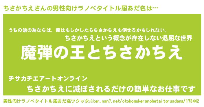 | 意味不明あだ名 | 『住所不定無職ちさかちえ(7歳)』 |
