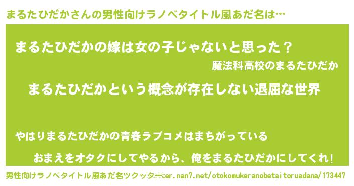 | 女子向けラノベタイトル風あだ名 | 『まるたひだかの契約王妃』 |