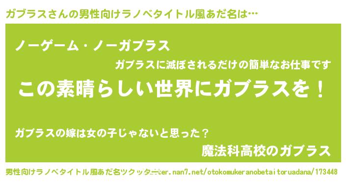 | 胡散臭い通販商品みたいなあだ名 | 『あなたにだけ特別に提供する100年もののヴィンテージワイン…その名も「ガブラス」』 |