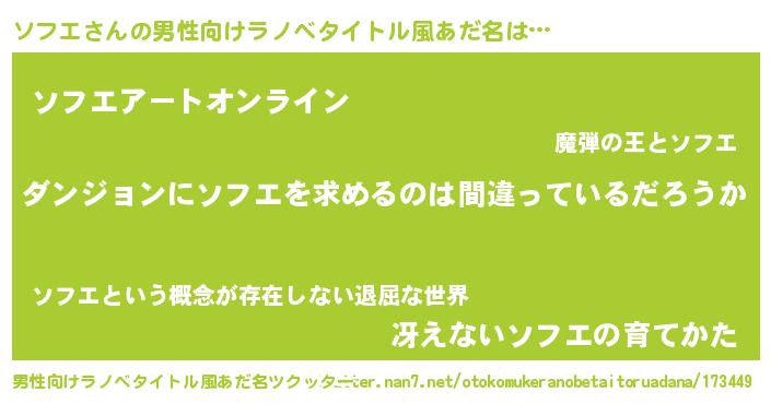 | 胡散臭い通販商品みたいなあだ名 | 『信頼と実績のネックレス…その名も「ソフエ」』 |