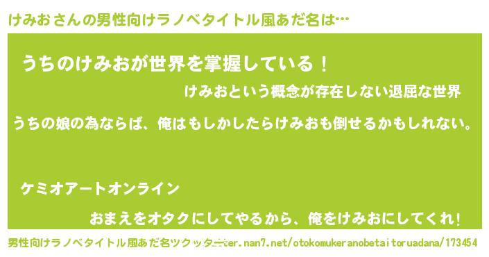 | ヘコむあだ名 | 『レバニラ』『けみお(小並感)』 |